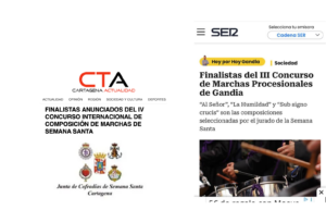 Me complace compartir que he sido finalista en el IV concurso internacional de Composición de Marchas de Cartagena, cuya final se celebrará el 31 de enero, y también en el III concurso de marchas de Gandía, cuya final se celebrará el próximo 21 de marzo.